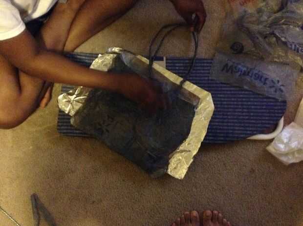 Yo meter los extremos de la palanca en los extremos del ciclo del borde y coloque una hoja de papel sobre la zona y fundir el aluminio con el hierro.