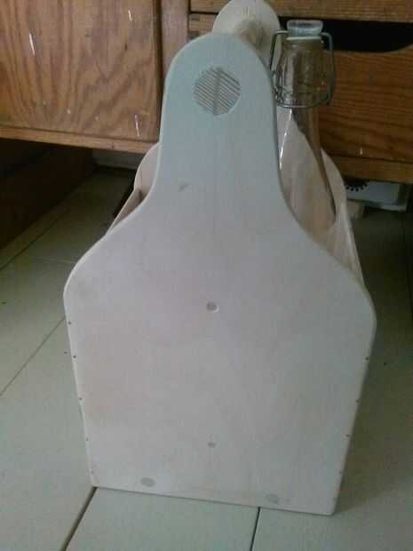 Las botellas descansan en los pernos montados sobre el mismo lado de la manija, así que los lados no tienen que tomar el peso de las botellas.