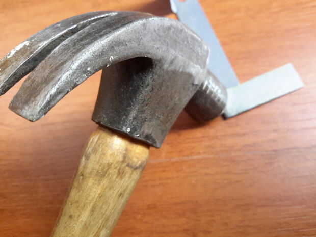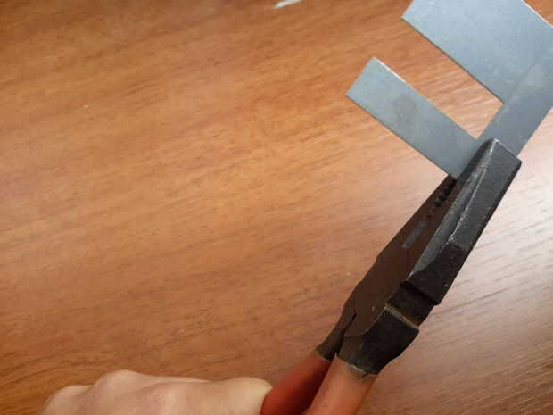 Empecé con las partes izquierdas y derecha. El martillo fue utilizado para hacerla más plana y continuar el trabajo de los alicates.