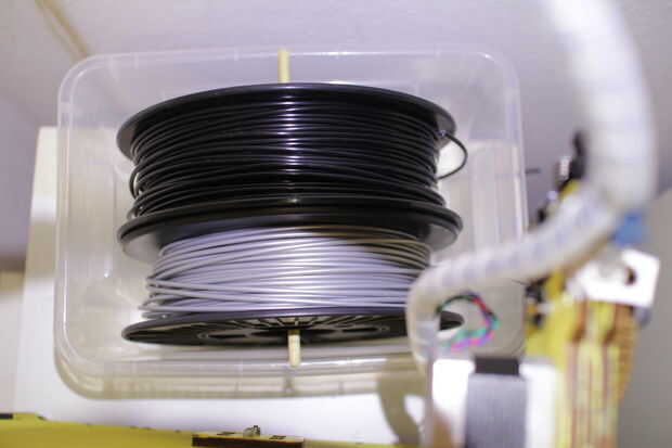 Mi novia tuvo la idea cuando una bobina de filamento no cabe mi impresora 3d con un agujero de montaje de 30mm.