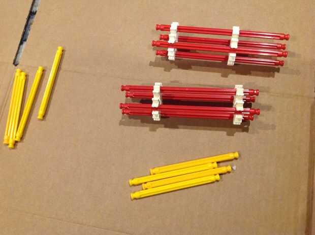 Para este paso ocho las barras roja y cuatro conectores blanco. No necesita nada de lo que han construido hasta el momento.