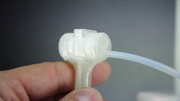 El sostenedor del tubo de filamento tiene dos agujeros para tubos de guía filamento flexible en dos diferentes tamaños para adaptarse a filamento 1,75 mm y 3.0 mm bot. El titular es simétrica que le permite elegir para insertar el tubo desde el lado preferido dependiendo de cómo su bobina de filamento desenrolla (mineral hacia la derecha hacia la izquierda).