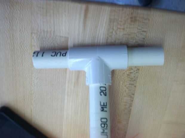 Inserte ambos tubo de pvc de 2 pulgadas de cada extremo del conector en forma de T.