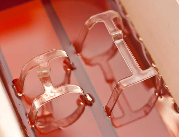 Me di cuenta de mantener el lado cobre boca abajo acelera el proceso. La razón es el cambio espontáneo entre la escoria de la reacción y líquido limpio, pero se necesita algo de espacio a dejar que suceda. Para ello he construido algunos titulares para mantener la placa levantado y a mano, levantándolo para comprobar la evolución del proceso.