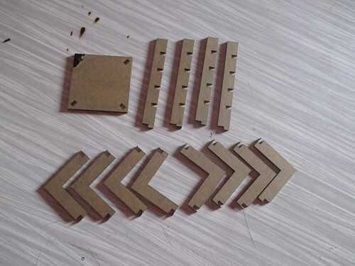 Dar este diseño láser cortador e imprimir un objeto. Después de imprimir formas cortadas se ve así. (Se muestra en la Fig.).