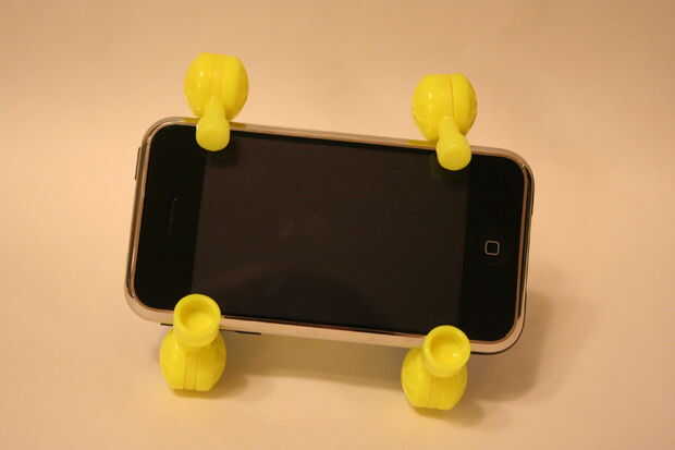 El último paso después de conseguir todo lo reunido es para insertar tu iPhone o iPod touch. Podrás doblar los enlaces flexibles para sostener el teléfono en posición para que no se mueva o deslice hacia afuera. Añadir un separador y 2 auriculares y mis hijos estaban bien en una 3 1/2 hora Cruz país viaje en avión.