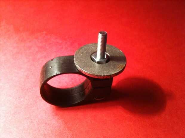 Nota: Como se puede ver en (Foto #2) la base de mi campana de la bicicleta ya tiene una pequeña tuerca cuadrada, pero decidí añadir otra tuerca en la parte superior para hacer de todo un poco más robusto y más fuerte.