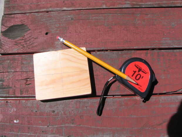 Voltear la pieza y buscar el centro de la Plaza de encontrar el punto medio de la longitud y la anchura. (debe ser un X.: P)