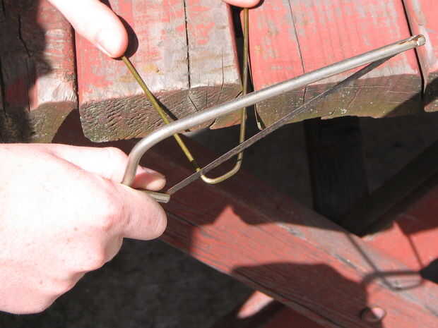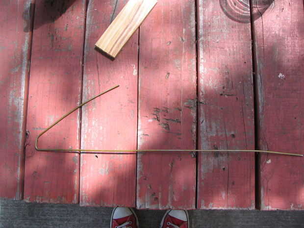 Quieres 16 pulgadas de esto, así que hacer un corte en la esquina y otro más uno cercano al gancho en el lado opuesto.