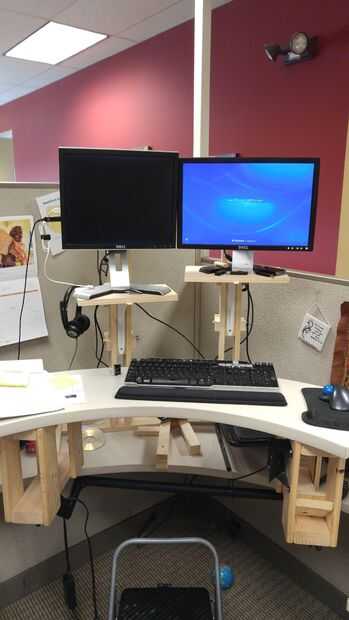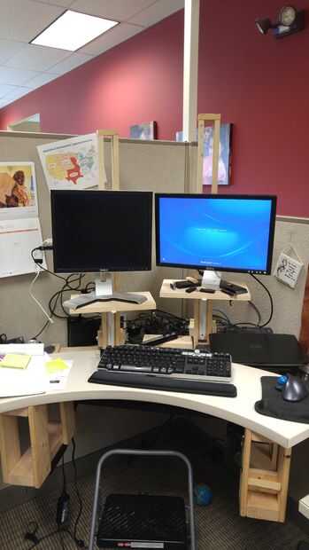 Ha estado usando un escritorio improvisado de pie durante unos años, pero no han sido totalmente feliz con ella porque no podía cambiar la altura. Miré en línea y la ajustable escritorio tiende a ser varios cientos de dólares e incluso entonces la cantidad del ajuste de altura permitían no era suficiente para obtener a los monitores a nivel de los ojos sin necesidad de comprar también postes/brazos de monitor adicional. Así que hice algunas ideas y vino para arriba con una solución que cuesta menos de $20 y podrían horas tiempo para construir.