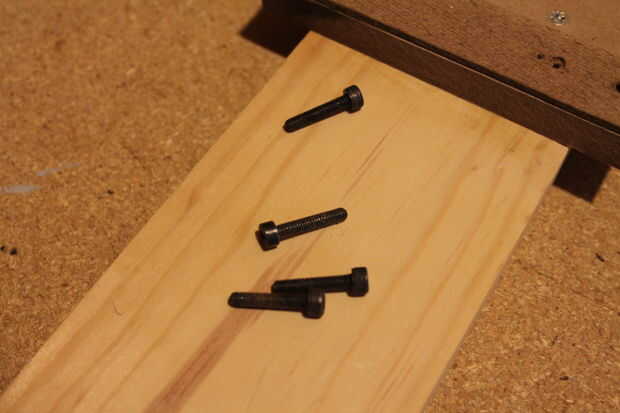 2 x tornillos para ajustar las tuercas T, por lo menos 1/8" más largo que el espesor de la madera que utilizamos