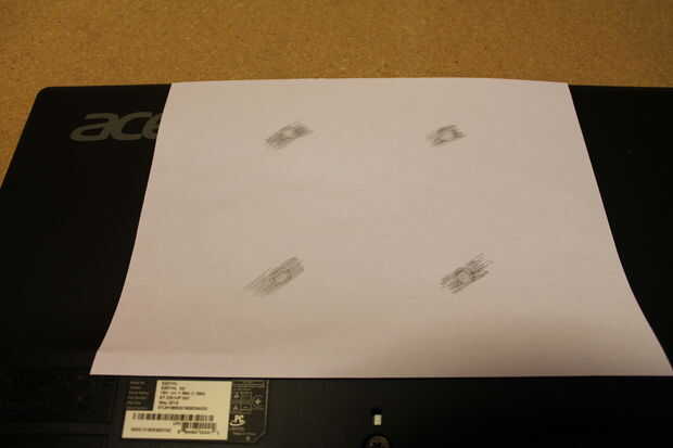 Yo no sabía acerca de los tamaños de orificio universal en el monitor al tiempo cortar la madera, he usado un trozo de papel y un lápiz para averiguar la ubicación de los orificios por sombreado sobre los orificios. Entonces podría transferir esto a mi madera y también averiguar el tamaño de la placa trasera.