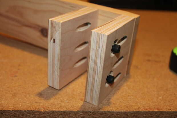 Utilicé los agujeros de bolsada para fijar a la madera contrachapada, pero podría encolar y atornillar te.