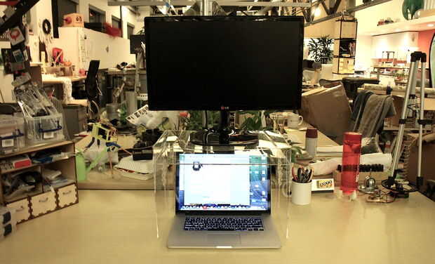 así que lo que haces al ser invadida con proyectos, y el escritorio está repleto de partes y piezas?  ¿Terminar de dichos proyectos, limpie su estación de trabajo y organizarse?  No seas absurdo!  Toma a tu monitor de escritorio y liberar más espacio