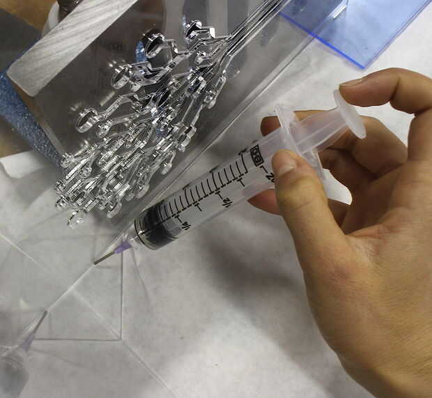 Utilizar la técnica de cementación que se describe en el paso anterior para pegar piezas de soporte triangular entre las piernas y la plataforma.