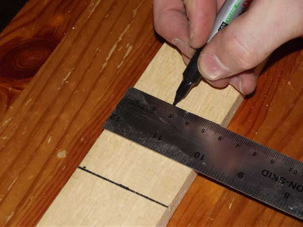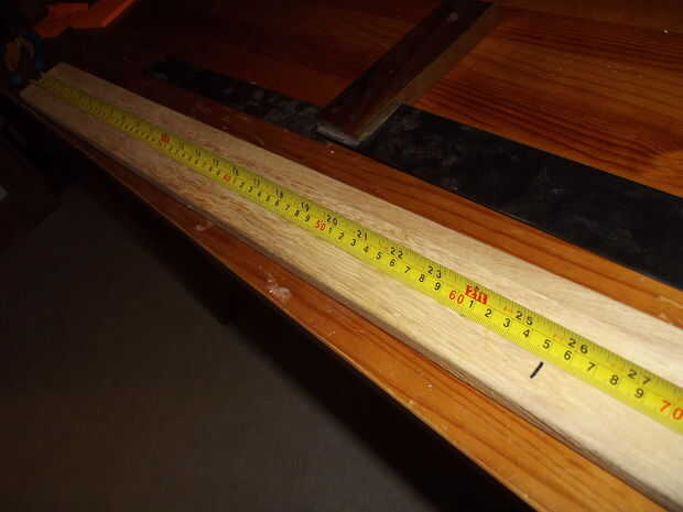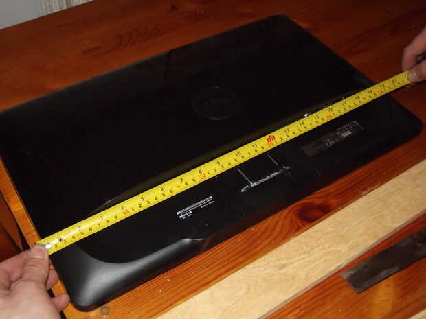 Con la sección de la bisagra segura configurar los tres monitores para medir un ángulo y la longitud requerida del montaje del centro de las piezas de la bisagra. Como se puede ver en la última foto que determina el tamaño de este colocando una regla en lugar de la madera. De pivote de centro el punto de pivote de la bisagra exterior fue 295 mm. I duplicado esto y agregó la con de la madera (650 mm) para el tamaño. 2 piezas de este tamaño se requieren.