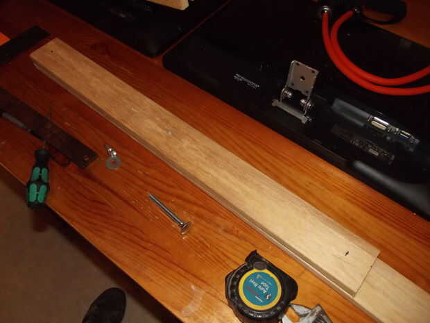 Una vez que tienes las bisagras 2 laterales construidas y los 2 Centro piezas montadas, ellos pueden ser atornillados en una construcción sandwich. Nota: en este punto que dio vuelta el soporte de montaje del centro boca abajo para hacer los monitores sit nivel construidos una vez.