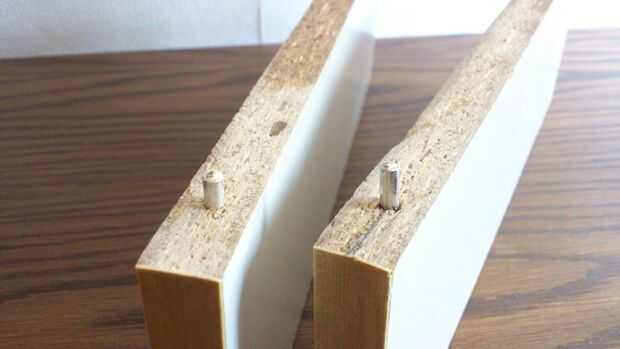 Marque los agujeros en las piernas, puso 2 centímetros del borde exterior y ser muy preciso con este. Entonces ponen sus tacos en los agujeros. Colocar los orificios en la placa es un poco más complicado, pero si usted medido y perforado de precisión, debe encajar.