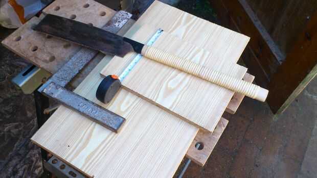 Utilizar el resto del material para hacer las 'patas'. También puede utilizar un material diferente si es la mirada que usted va para. Aquí es incluso más importante sierra recta, perpendicular y asegúrese de que ambas piernas estén de la misma longitud.