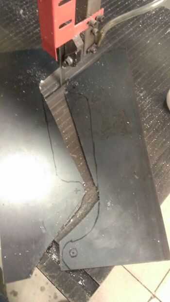Los lados tenían curvas en el patrón, así que usé el taladro para hacer unos agujeros de alivio en la curva, para que cuando la hoja de sierra en esa sección, no tensionó y pude hacer la vuelta para terminar el corte. Corté las piezas utilizando la Sierra de banda vertical.