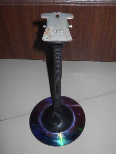 Cortar la base. Unir 3 discos. Finalmente pegar en la base del soporte del móvil.