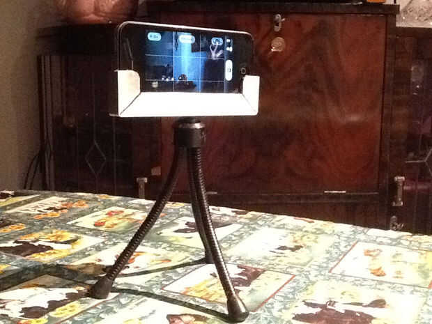 me pareció utilizar mi teléfono cada vez más como una cámara y vídeo cámara... así que era hora de crear un soporte para sostener mi telefono y poder adjuntarlo a mi trípode... aquí están los resultados.  La primera imagen es la titular adjunta a mi mini trípode.