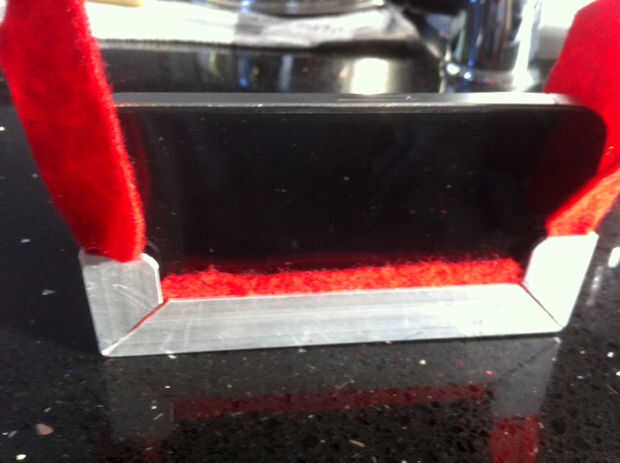tomé un pedazo de chatarra sentía y cortado a la medida. Con abundantes cantidades de pegamento para madera en el fieltro, lo pegué en el canal. Usé el teléfono para empujar el fieltro en el canal y luego utiliza la regla de acero para empujar el fieltro en las esquinas. Recortar el fieltro con un cuchillo afilado (después de que el pegamento se haya secado). El pegamento sostenga el fieltro firmemente al metal, he hecho esto muchas veces en otros proyectos.
