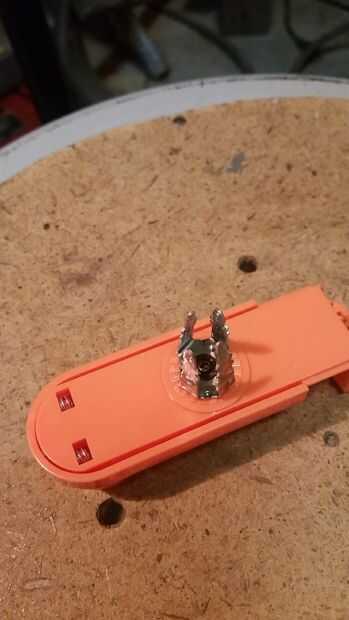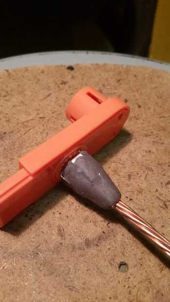 Quité la goma con un par de alicates de punta. Raspa poco de pegamento en las lengüetas de metal para que el epoxy pegaría mejor.