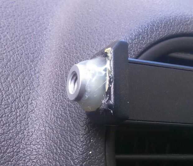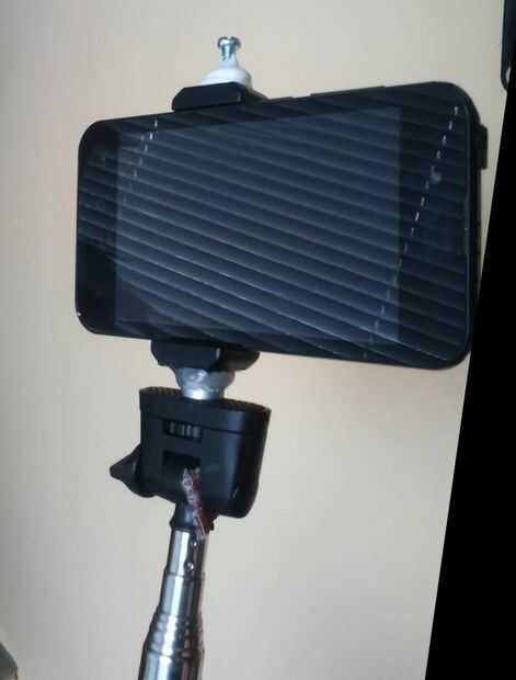Pasaron otros días y necesitan poner el celular en un trípode y no tuve ninguna tal adaptador para trípode. Por lo tanto al extremo fijo del titular del teléfono he añadido una tuerca de 1/4-20, este es el hilo (unidades imperiales) utilizado para los trípodes y cámaras de fotos. Imágenes muestran el soporte se utiliza en un palo selfie donde Monte roto el original.