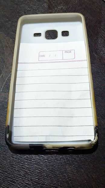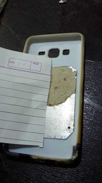Pedazo pequeño de papel y lugar, en el pequeño pedazo de hoja de Metal de paso 4 cortes. (Como se muestra en la foto, no quería rascarse la espalda de mi teléfono, usé protección más un pedazo de papel & & trabajado multa.) Paso 5- Coloque el teléfono dentro de la cubierta modificada y hemos terminado!!!!