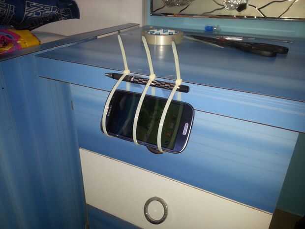 Se trata de un soporte de cartón barato que puede ser colocado en el salpicadero de tu coche con algun pegamento o Velcro o una mesita de noche para tu habitación o incluso un dormitorio de collage. Puede ser hecho fuera de una caja de pizza vacía, c