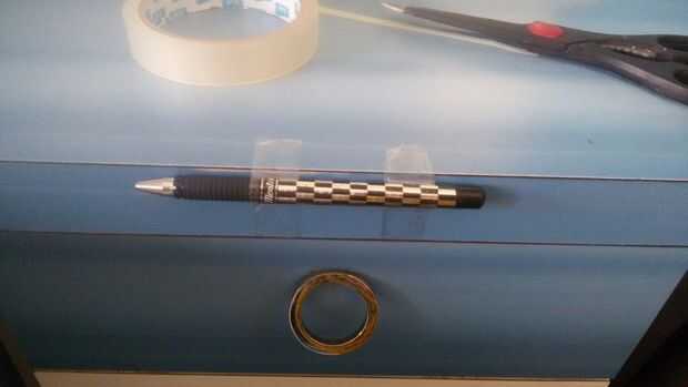 Antes de grabar la pluma, retire la tapa de la pluma. La cinta la pluma en 2 lugar por lo que hay lugar para insertar de la amarra.
