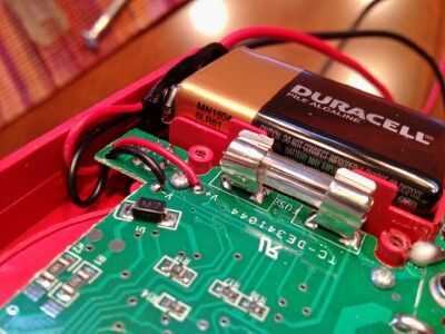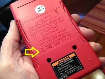 Ver la segunda foto. Se incluyen detalles sobre el fusible en la parte posterior de la caja del medidor, pero es fácil que pierda. Ver la flecha amarilla. El fusible es 0, 5A a 250 voltios. El tamaño es 5 x 20 mm.