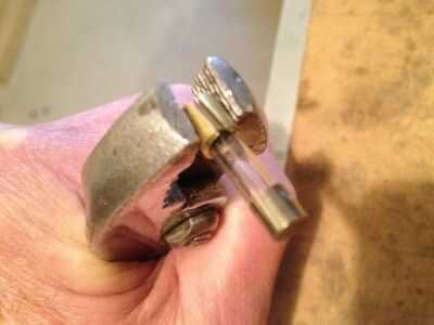 Ver la segunda foto. Usé un par de pinzas para que el tubo de ajuste el fusible. Era todavía un poco flojo, por lo que doblado el tubo sólo un poco sin el fusible para obtener un ajuste más cercano. PRECAUCIÓN: Estos fusibles de vidrio pequeños son delicados. Rompí uno por empujar demasiado duro en él.