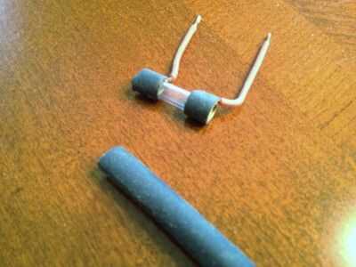 Tenía la esperanza del tubería del encogimiento del calor añadir la cantidad correcta de tensión para el tubo de latón, pero que demostró una esperanza válida. Antes de que probé el tubo de latón, pensé en utilizar algunos más fino latón de hoja que se doblaría en las tapas. Es lo suficientemente flexible como para que el encogimiento del calor tubería probablemente habría hecho el latón ajuste perfectamente alrededor de las tapas. Porque el tubería del encogimiento del calor no añadía tensión, retocaron el ajuste por solo prensar un poco con un par de pinzas.
