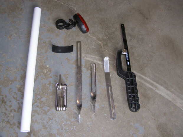 Como suerte, encontré un pedazo de tubo de PVC al lado de la carretera. Todo lo que tenía que comprar para este proyecto fue un puñado de tornillos, tuercas y arandelas.
