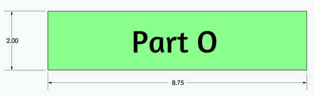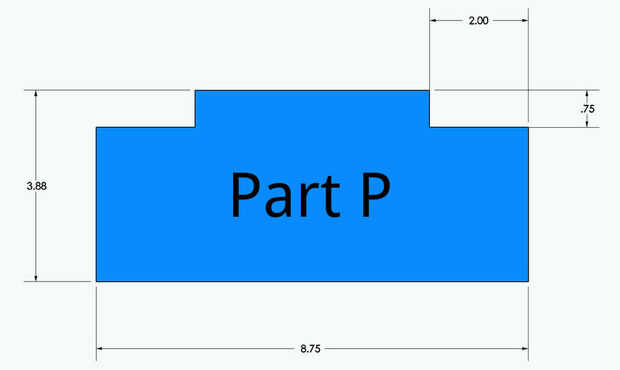 Recorte de pieza P es similar a la pieza D pero las dimensiones del hueco son 2,00" por 0,75" dejando una muesca 4,75 "X 0,75"