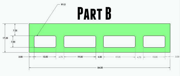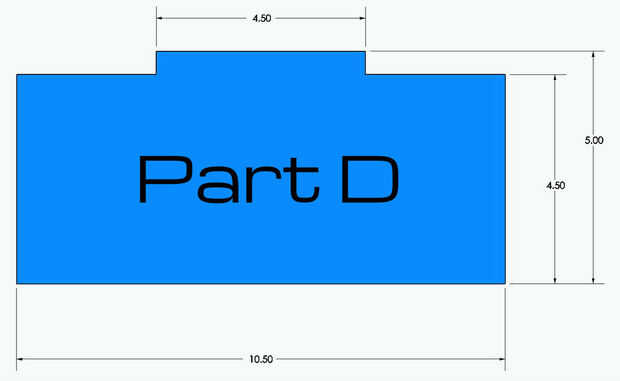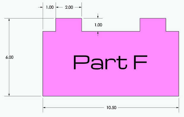 Pieza F debería haber desde la parte superior cortar los dos 1.00" X1.00" cortadas esquinas, luego recorte desde la mitad a lo largo de