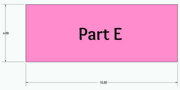 Ahora piezas de corte D, E1, E2, F, J1, J2, N, O y P como rectángulos de tamaño bruto, pedazo D es 5 "X 10,5", piezas E1