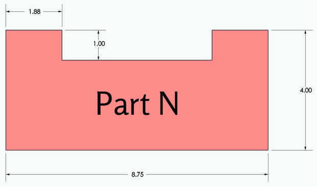 Pieza N debería tener el corte de sección de centro superior 1.00" profunda dejando los dos bordes exteriores intactas en 1.88"