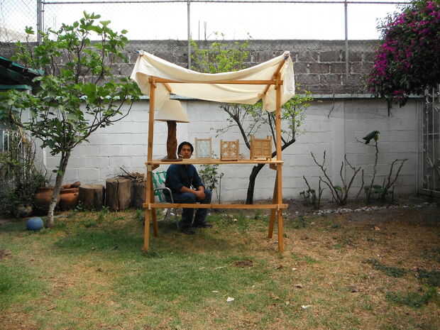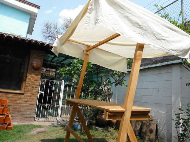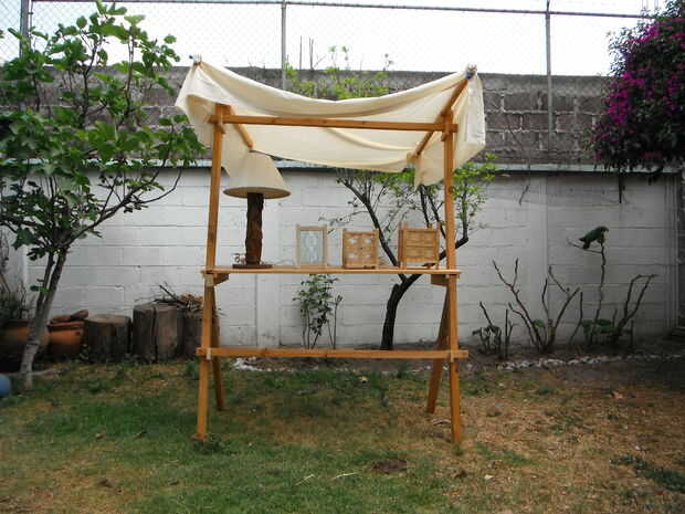 El techo de su hecho de lona y atado con cuerdas del amortiguador auxiliar hace una sombra agradable para reposar bajo el sol, también parece más rústico si necesita alguna protección de agua puede ser tratada con cera de abeja