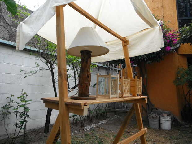 este proyecto nace de la necesidad y un caso grave de fiebre de la cabina. Recientemente he vendido todos mis muebles en preparación para un estilo de vida móvil. Mi hack más grande todavía! Pensé que había una bonita bandeja de madera y soporte podr