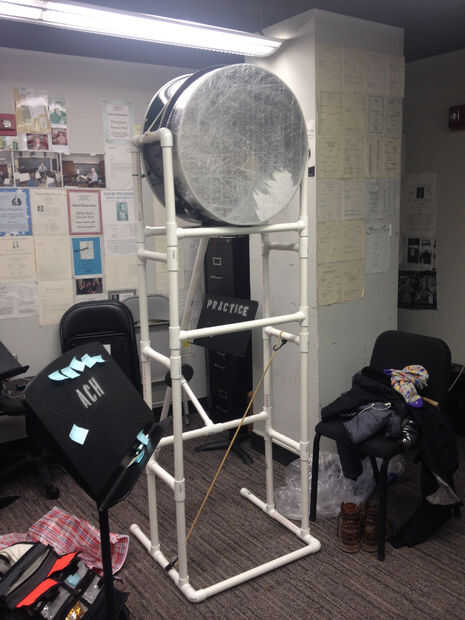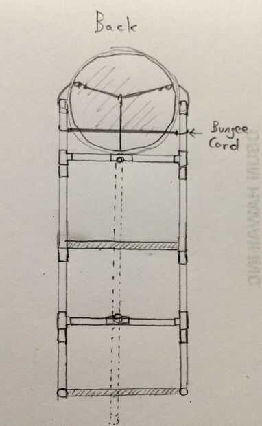 La idea principal es construir una base que puede soporte todavía (no caída) mientras que el tambor de la práctica se golpea tan duro como un odaiko debe ser golpeado. Con esto en mente, la parte frontal se mantiene luz mientras que la parte de atrás se da más soporte. Tenga en cuenta que un real odaiko Peso libras de 3 dígitos, mientras que un tambor de acero práctica podría peso 10-20.
