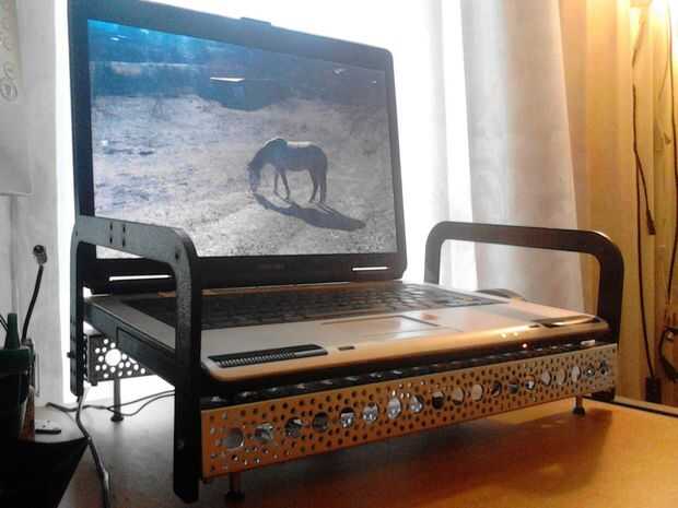 Tener algunas partes de Actobotics que capaces de construir un soporte para mi portátil. También he utilizado 2 ventiladores de pc vieja asi puedo enfriar tanto como pueda mi portátil. He comprado un soporte del ordenador portátil el año pasado pero me di cuenta que el ventilador no está haciendo una cosa así cuando las partes llegaron a mis manos pensé que era una buena idea para algo mejor.