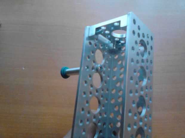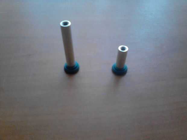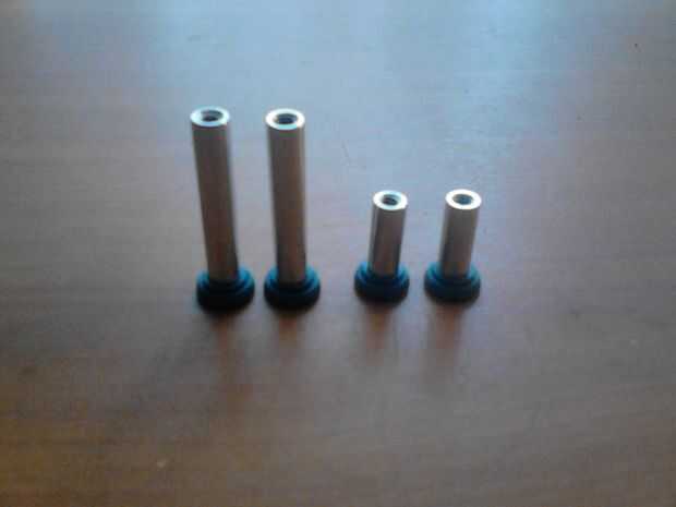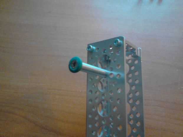 Tome 1 separador, 1 tornillo de cabeza plana y amortiguador 1 calcetín y conectarlos, es muy fácil. Vamos a necesitar 2 separadores cortos para el largo delantero y 2 para la espalda de nuestro stand con el fin de lograr un ángulo. Repetición para los separadores de 3 y cuando se hace colocar al final de cada canal con un tornillo de cabeza de pan.