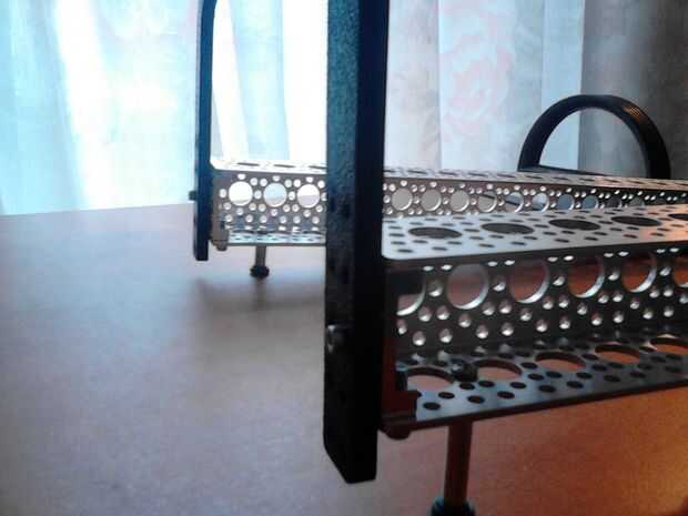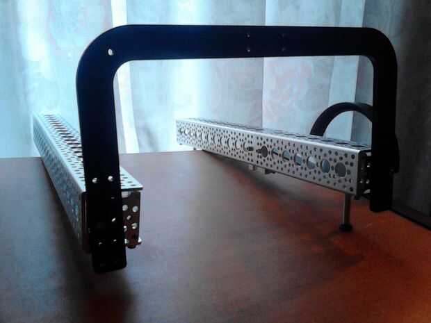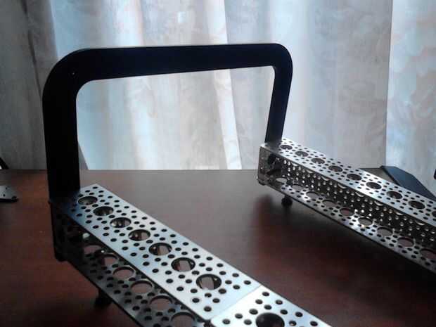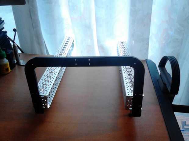 Tomar la piezas de abs y 4 tornillos de la máquina. Conecte cada abs al canal con 2 tornillos, uno en cada extremo del canal. El soporte de abs tiene 5 agujeros y yo el tercero.