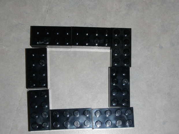 Esta es una de las capas más fácil. Todo lo que vamos a hacer es armar un cuadrado de 10 x 10. Tomar 2 - 2x4s y ponerlos en horizontal. Tomar 1-2 x 4 y ponerla vertical justo al lado de los otros para que complete un ángulo recto. Repita los pasos para hacer un cuadrado de 10 x 10.