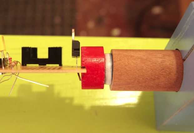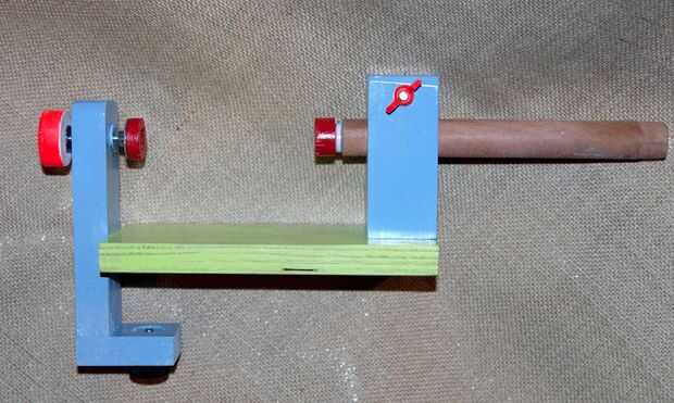 Para usar el artilugio, primero mueves la mandíbula izquierda cuanto irá a la izquierda usando el botón de ajuste. Luego se deslice la varilla de madera en la que la mandíbula de derecha se sienta hasta que las ranuras de las mordazas del enganche los extremos del tablero del circuito. La tercera foto muestra cerrar cómo al final de la Junta encaje en la ranura de la mandíbula derecha.