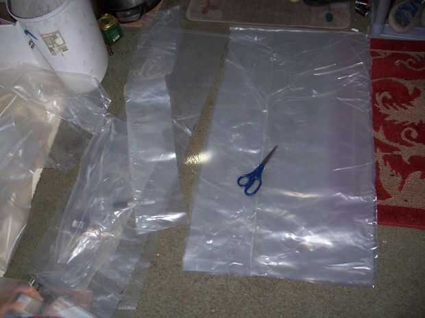 Algunas fuentes que encontramos para el plástico incluyen un traje de nylon, un bolso que contuvo una vez un consolador y un rollo de hojas de plástico. Puede usar a la tela de una vieja mochila, vinilo pantalones o cualquier otra cosa que usted puede encontrar, siempre y cuando sea resistente al agua y lo suficientemente fuerte como para durar.