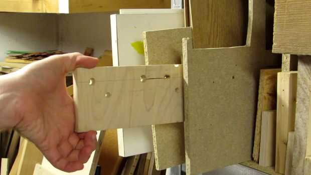 Elegí un pedazo de 3/4 '' o madera contrachapada de 18 mm, pero como se puede ver era un pedazo de todos modos. Puedes utilizar madera maciza, sólo tener en cuenta que puede romper más fácilmente si la veta corre a lo largo del lado pequeño (es decir, paralelo al borde que desea utilizar en). Si usted escoge una pieza donde la veta corre a lo largo del lado largo debe estar en el lado seguro. OSB y MDF deben funcionar así, pero no sería mi primera opción debido a polvo en la posterior y bordes ásperos en el anterior.